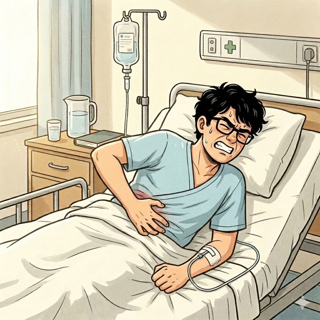 何の前触れもなく、左の腰あたりから下腹部にかけて、突き刺すような激痛が走りました。 「ただの腹痛ではない」と直感するほどの痛み。脂汗が止まらず、痛みはどんどん増していきます。