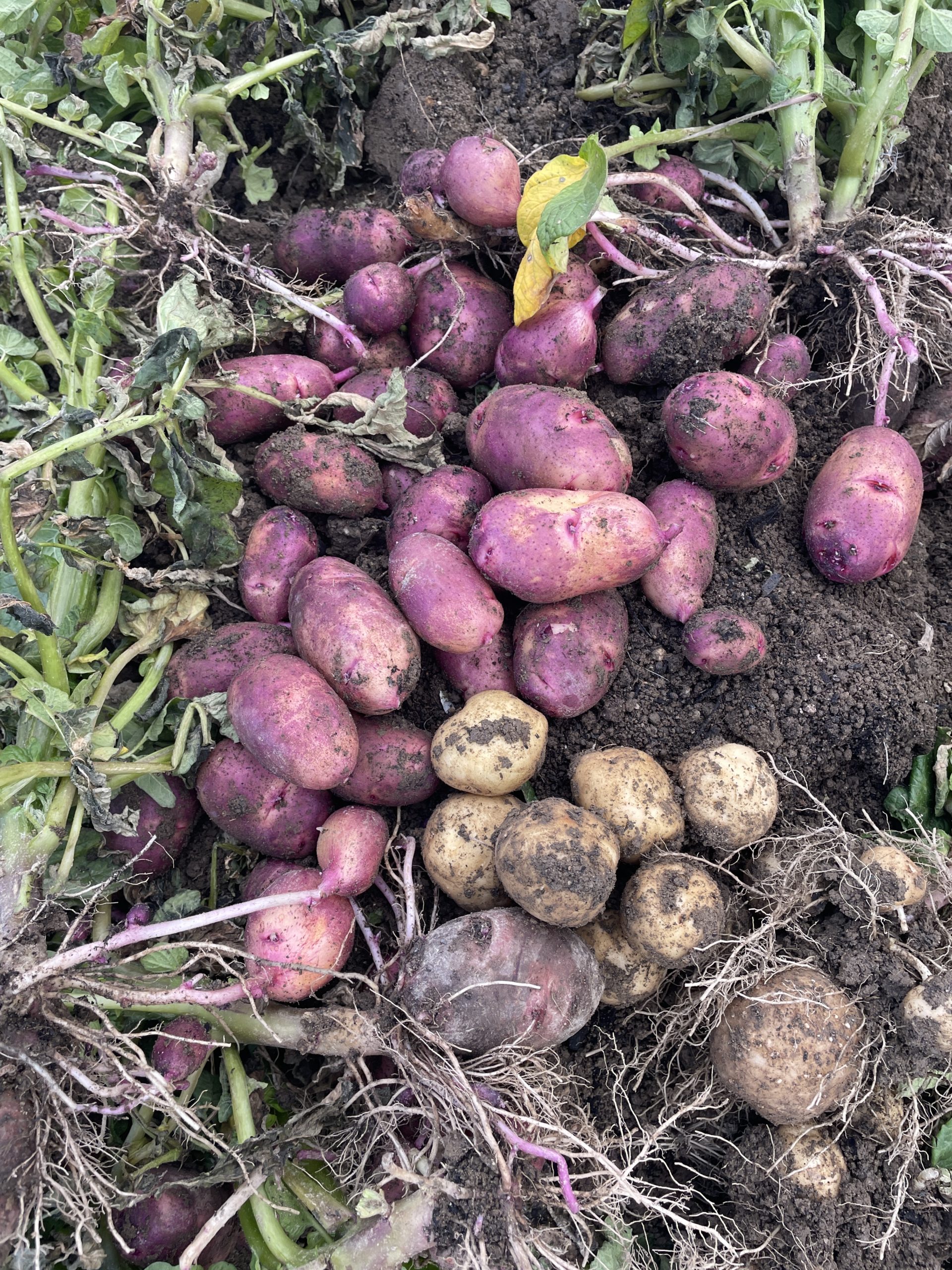 が重なり、年が明けてようやく収穫に至りました。2週間前に試し掘りをしたのですが、サイズは小さく、数も少なく結果は散々でした。その後の2週間で改善するはずもなく、結果は想像通り。