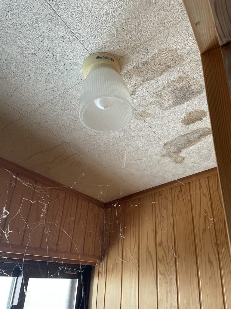 最初は「あー、雪が染み込んだのかな」なんてのんきに考えてたんです。 でも、よく見ると何ヶ所かある……。これは屋根修理で結構な出費になりそうだな、と早くも頭を抱える私。