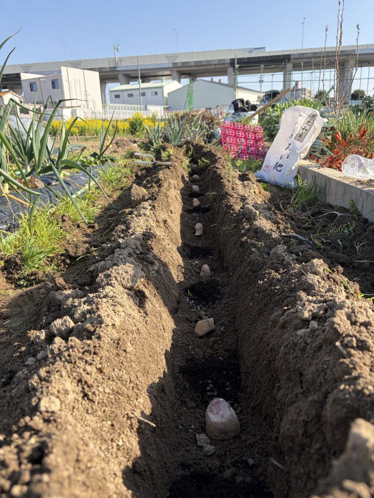 - 注意点: 肥料が種芋に直接触れると「肥料焼け」の原因に。少し土を挟むのがベスト!