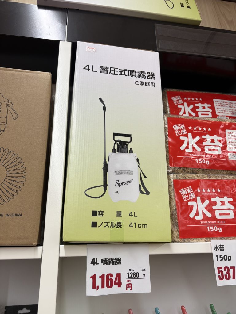 お店を覗いてみると、メインは野菜や果物などの販売。 野菜の苗や種を期待していたので少し残念でしたが、唯一心惹かれたのが**「噴霧器」**です。